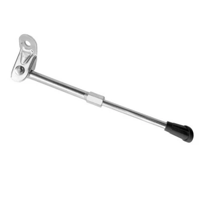 La clásica pata de cabra. Va montada sobre un orificio que suele estar justo detrás del eje de pedalier, en el centro de la bici. Si llevas alforjas delanteras y traseras es el mejor lugar para poner la pata de cabra.